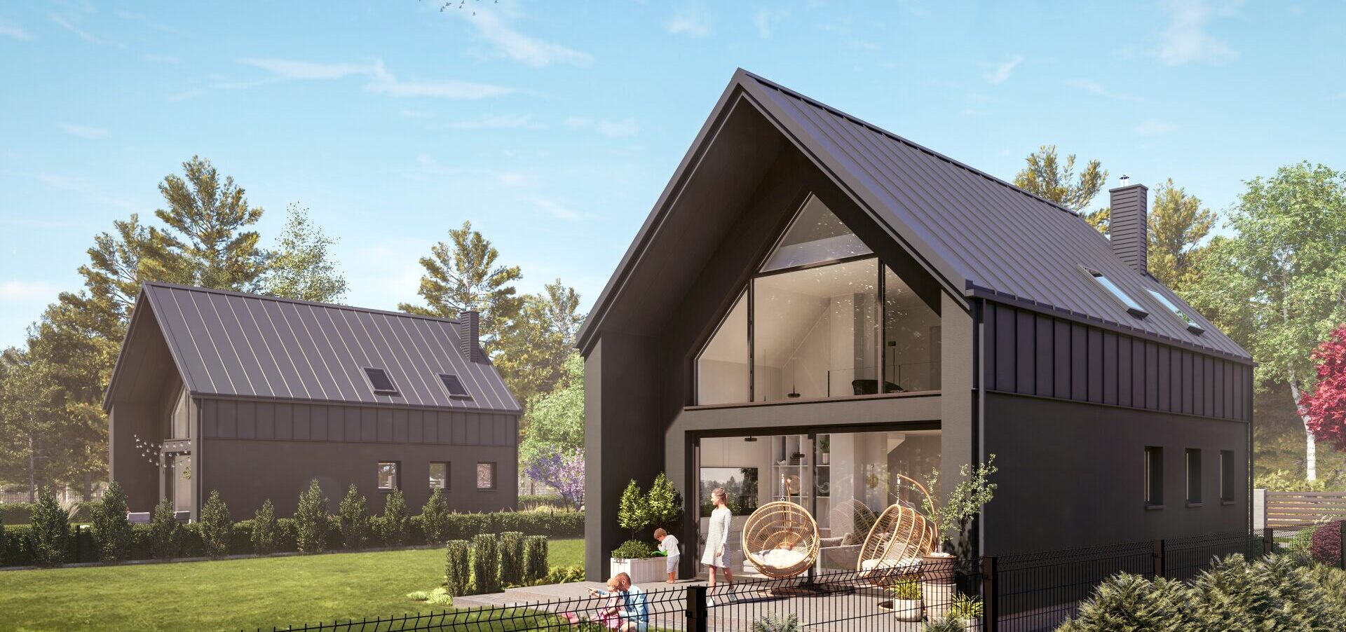 Szwajcaria Dylewska to zamknięte, kameralne osiedle, składające się z czterech nowoczesnych domów w nowoczesnej zabudowie typu stodoła. Projekt zachwyca nie tylko estetyką formy budynków, ale również ich kolorystyką, świetnie wpasowującą się w otaczającą przyrodę. Połączenie nowoczesnej architektury z naturalnym krajobrazem tworzy harmonijną przestrzeń idealną do życia w zgodzie z naturą.