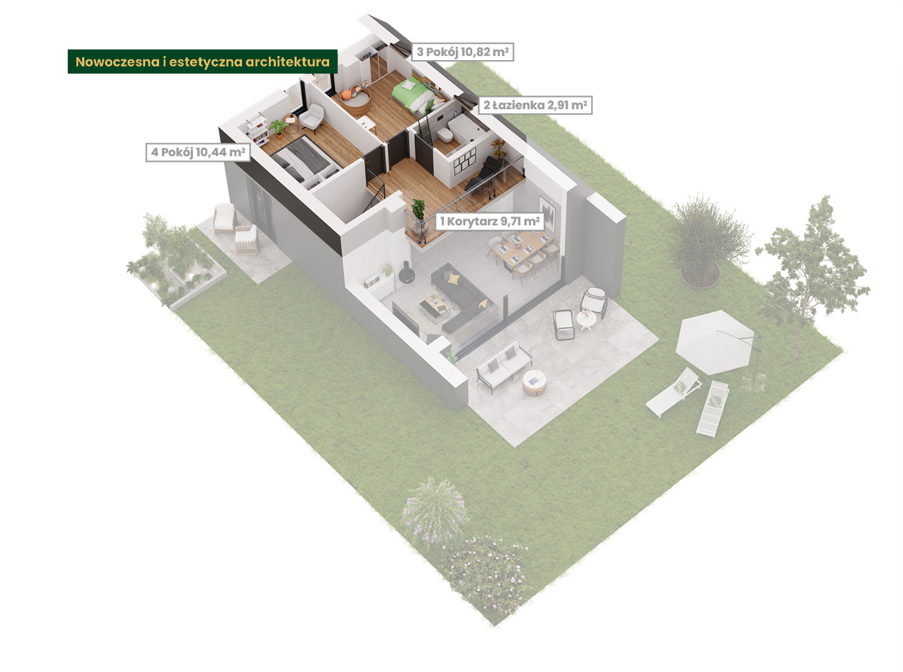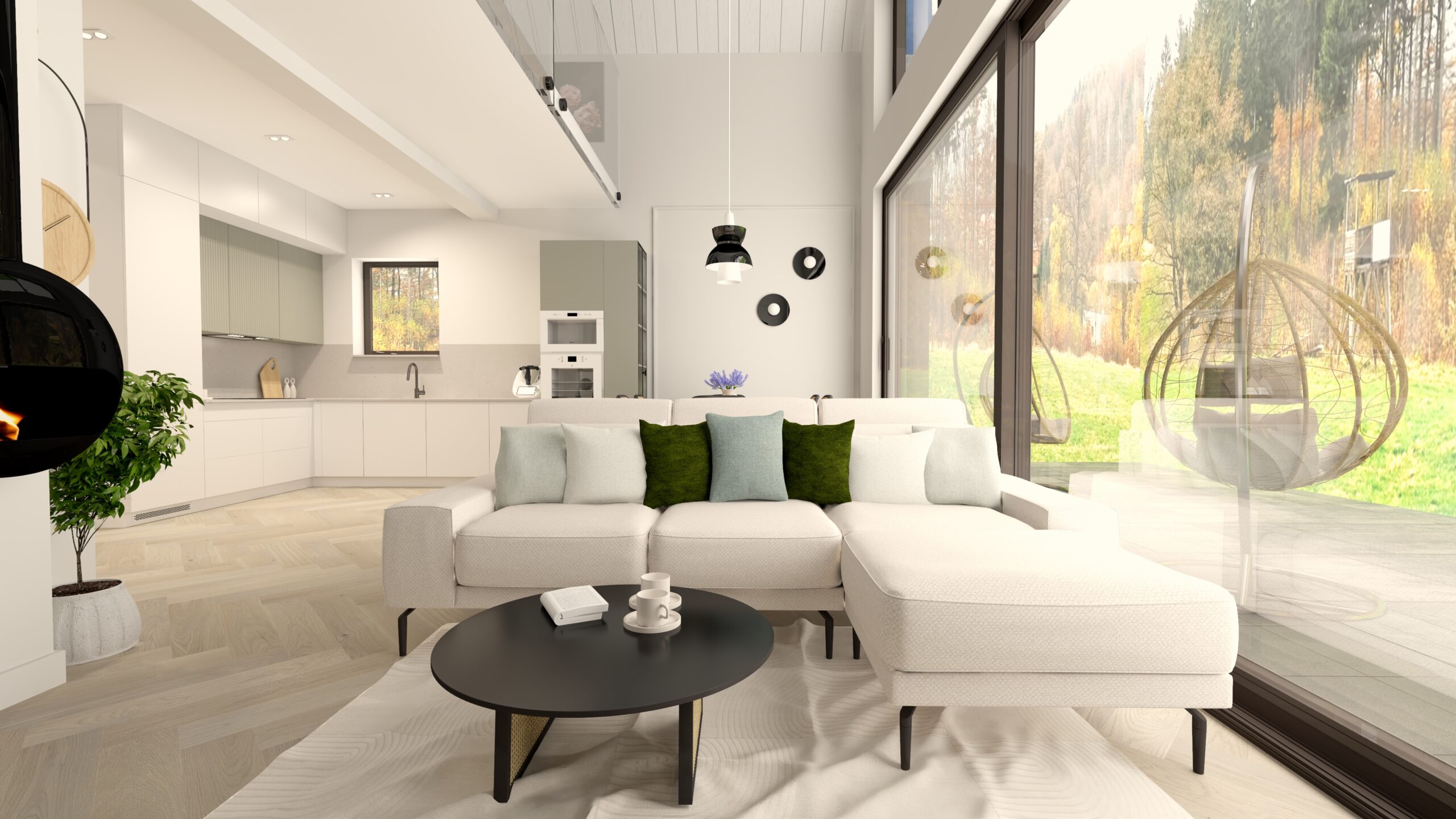 Szwajcaria Dylewska jest idealnym miejscem dla każdego, kto lubi odpoczywać na świeżym powietrzu. Domy mają balkon i dwa tarasy, które wraz z dużym ogrodem tworzą idealne miejsce do naturalnego relaksu. Olbrzymie przeszklenia zapewniają nie tylko doskonałe doświetlenie wnętrz, ale również piękne widoki na otaczający las. To miejsce, gdzie można cieszyć się spokojem i bliskością przyrody, nie rezygnując z komfortu nowoczesnego życia